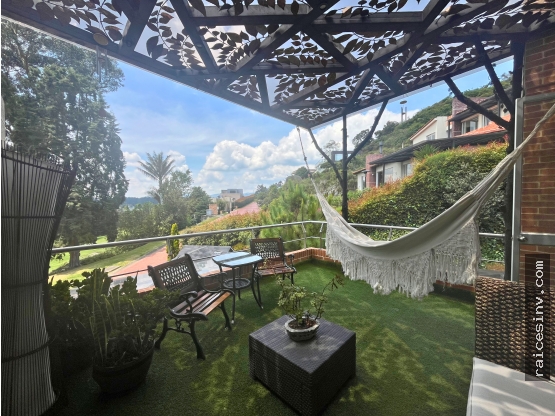 Casa de 436 m2 de 4 habitaciones cada una con baño, pérgola en jardín y varias terrazas con vistas panorámicas. Tiene 3 habitaciones en el 2do. piso y una habitación en el 1er. piso que también puede ser estudio, sala con chimenea, comedor, amplia cocina equipada con acceso directo a la pérgola, espaciosa sala de TV, patio de ropas, cuarto y baño de servicio. Adicionalmente, en el 2° piso encontramos sala de spa, con jacuzzi, baño y terraza y cada habitación con walk-in closet, terraza y vista. El conjunto tiene campo de golf de 18 hoyos, canchas de tenis, club house con restaurantes, bar, piscinas de adultos y de niños, sauna, turco, sala de belleza, gimnasio, zona infantil, caballerizas, cancha de fútbol, salones sociales, lagos y senderos. Cuenta con excelente accesibilidad sobre la autopista norte, a la altura de Briceño, lo que también le proporciona una rápida conexión con Bogotá, Chía y Cajicá.