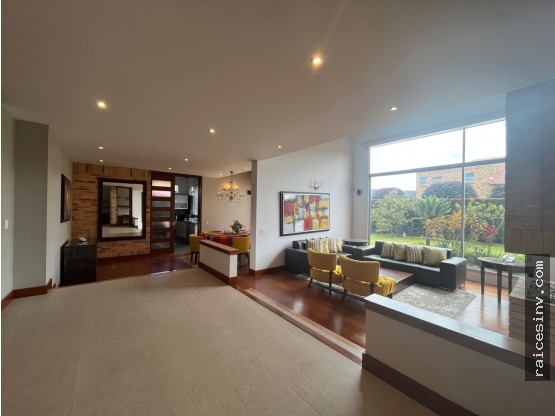 Casa Amoblada para arriendo de 4 habitaciones con baño, lote de 1157 M2 y area de 345 M2.Nos recibe una doble altura en la zona social conformada por la sala, comedor con chimenea de relación directa con la terraza BBQ y jardín posterior, cocina abierta, zona de ropas, cuarto de servicio y baño, 6 cupos de parqueo y dos depositos, dos habitaciones auxiliares con baño en suite en primer piso además del estudio, en segundo piso family room con balcón, habitación auxiliar con baño, habitación principal walk in closet y baño, ideal para aquellas familias que buscan una vida tranquila en un entorno campestre, rodeado de zonas verdes y naturaleza.